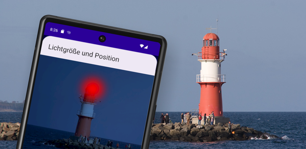 Simuliere das Leuchtfeuer entweder im Rahmen eines Fotos, des gesamten Displays oder mit Hilfe deiner Smartphone-Taschenlampe.
